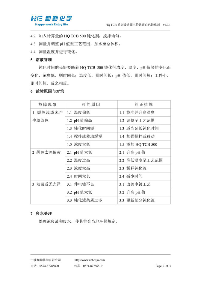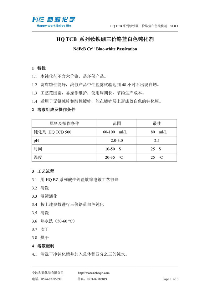 HQ TCB 系列钕铁硼三价铬蓝白色钝化剂