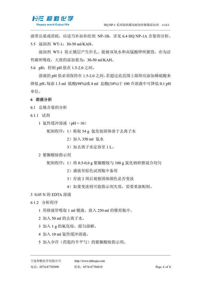 HQ NP-1 系列钕铁硼高耐蚀性镀镍添加剂