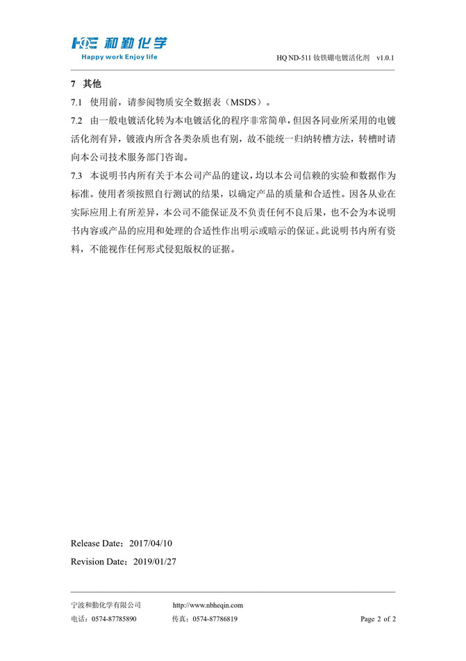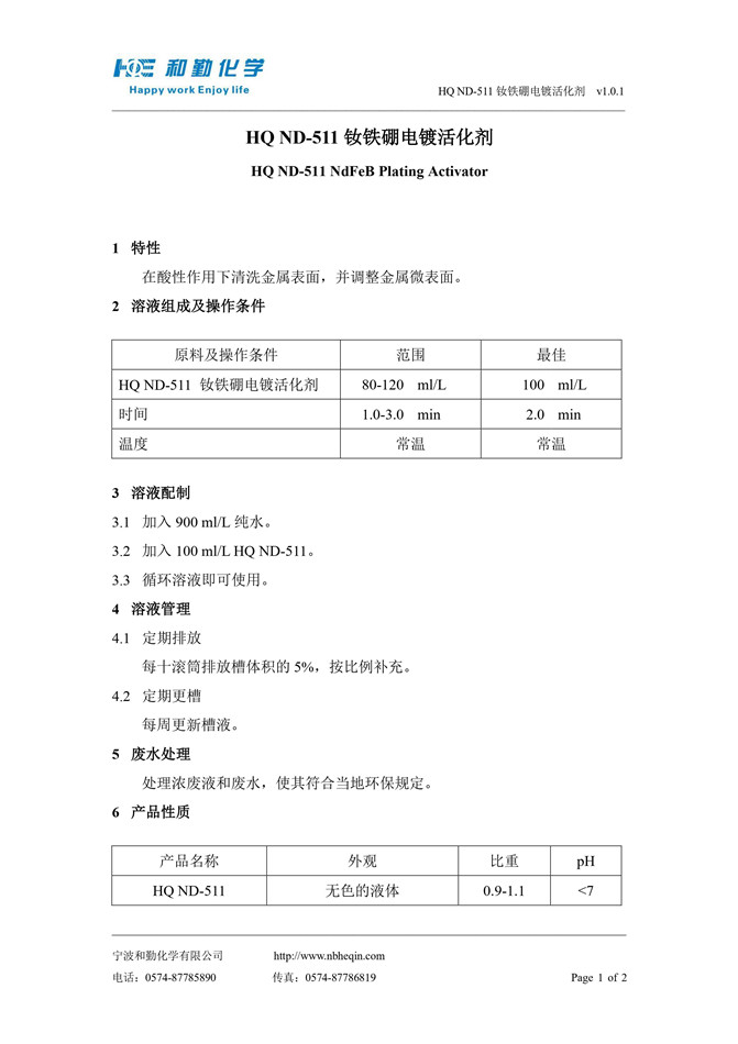 HQ ND-511 钕铁硼电镀活化剂