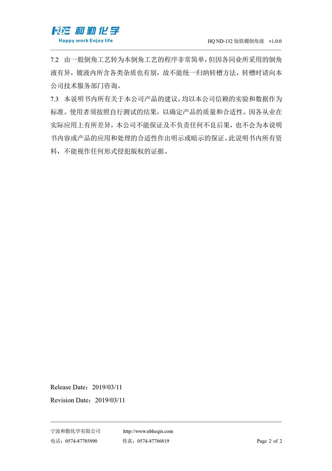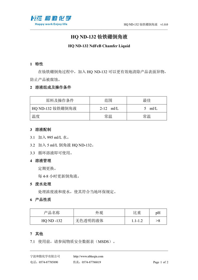 HQ ND-132 钕铁硼倒角液